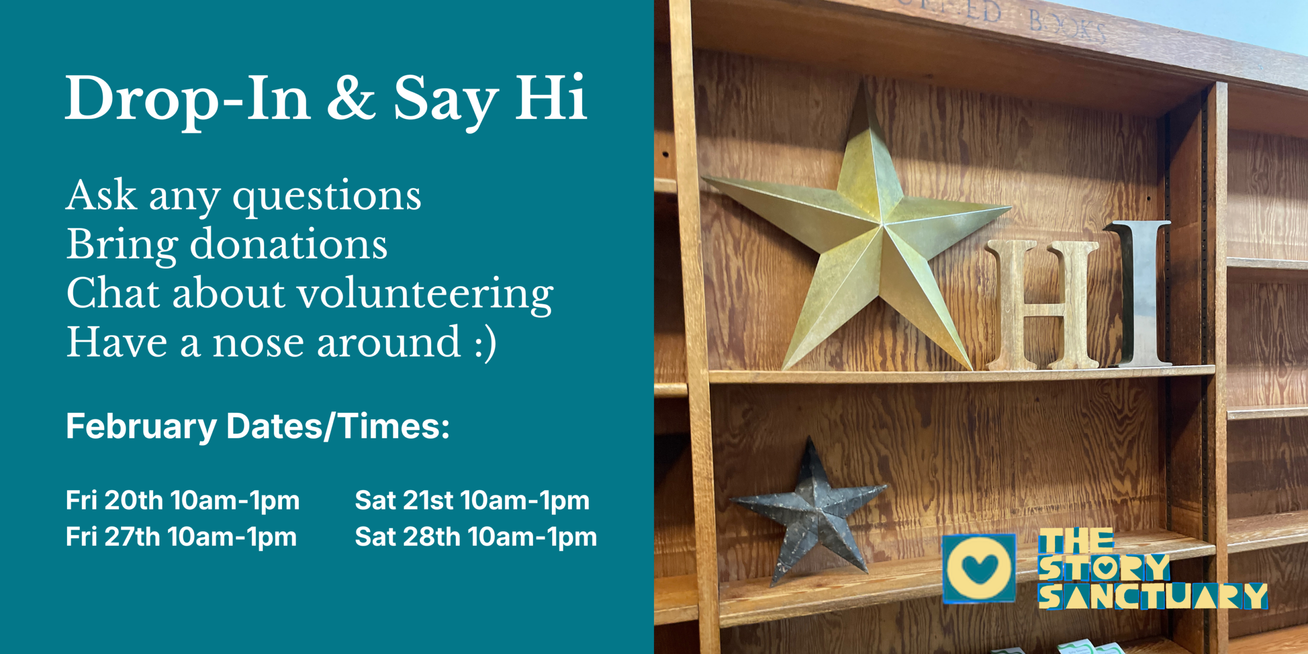 Come down on Friday or Saturday mornings in February and March to find out more about The Story Sanctuary!