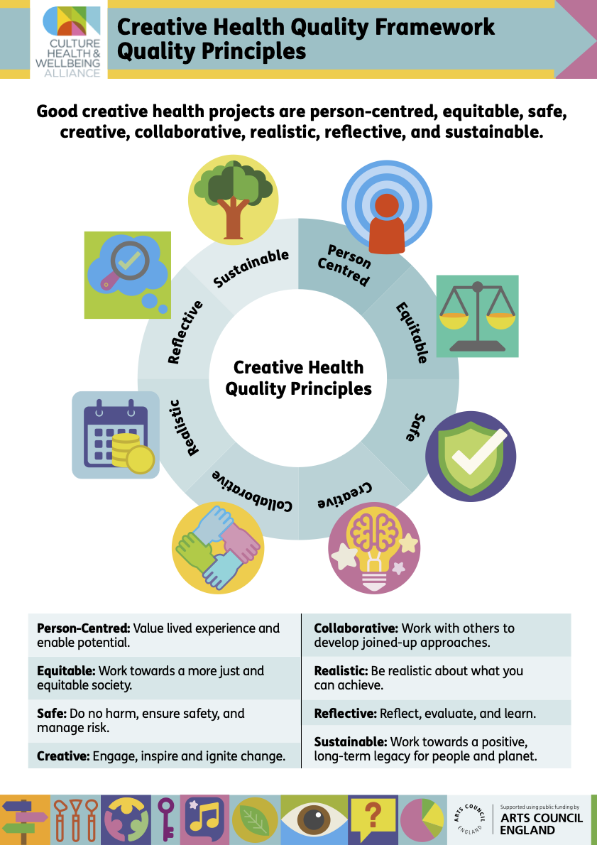 A Collective is a member of Croydon’s Creative Health Network and works to the Creative Health Quality Framework. This means we shape our work together with our community in ethical and equitable ways. Don’t worry — we also love to play and have fun!